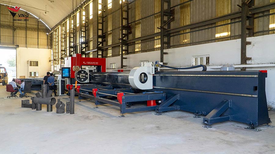 Máy cắt laser ống 3 mâm kẹp là dòng máy chuyên dụng cho ngành kết cấu thép, đóng tàu và một số ngành công nghiệp hàng nặng, được Công ty cổ phần cơ khí chính xác VN-J thiết kế và sản xuất tại Việt Nam